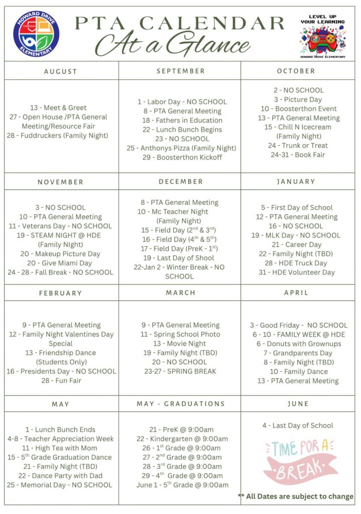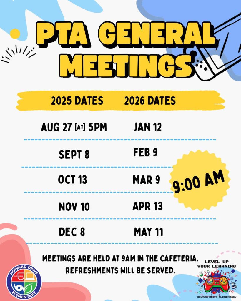 This year at Howard Drive Elementary, our theme is “Level Up Your Learning!” We want to inspire our students to keep their curiosity alive, explore new ideas, and challenge themselves to grow every day. Together, we’ll encourage a love of learning that goes beyond the classroom and helps our kids reach new heights throughout the year.