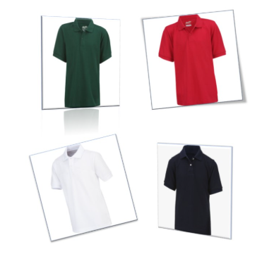 Only shirts with collars are to be worn (polo type or oxfords are acceptable). The shirt colors include red, hunter green, navy, and white.